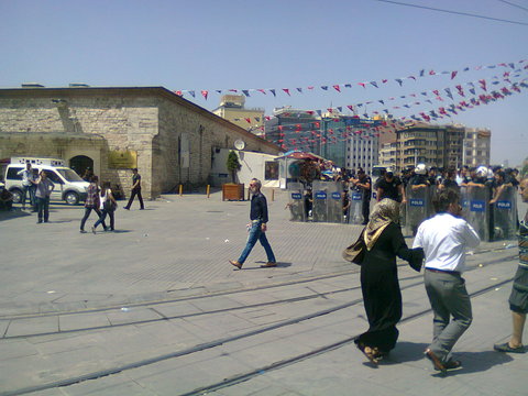 Top of İnönü Caddesi.  The crowds are about to start running from the tear gas of the police