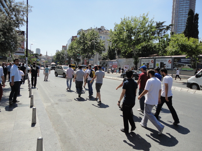 Our university building lies between Cevahir and Taksim, and our students go to both places to hang out. On Saturday, the usual crowds were out in front of Cevahir. But there were also clusters of people walking determinedly in the direction of Taksim.