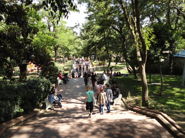 We passed into what seems to be called both Democracy Park and Maçka Park. It is a stream valley park, although Kadırgalar (“Galleys”) Caddesi runs where the stream once flowed. The park was practically empty. Where were the people who would normally be enjoying the grass and trees on a sunny Saturday afternoon? They were probably protesting at Taksim.