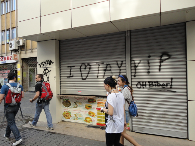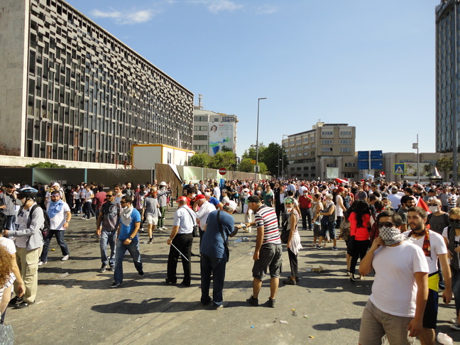 Would you imagine that these were words of condemnation? The power that the crowds had been fighting was civilian police power, not military police power. A rumor seen on Twitter was that the military had been handing out gas masks to protesters. Perhaps many of the protesters wished the Turkish military could have staged a coup before Tayyip Erdoğan emasculated it (by imprisoning lots of generals on charges of plotting a coup).