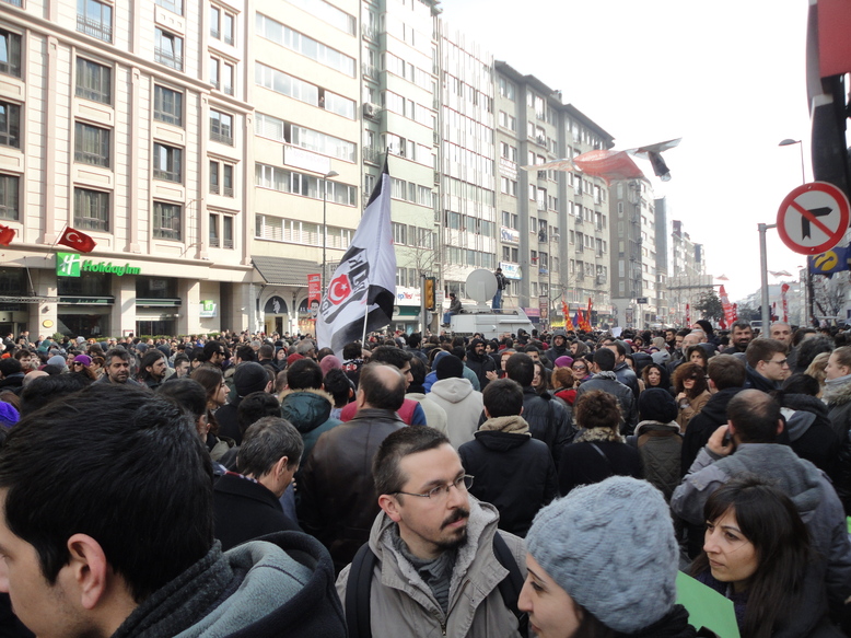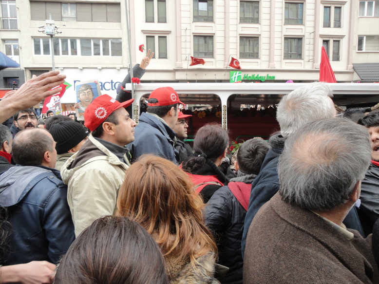 I had hoped to stay on the edge with some freedom of movement. I did not think the police would attack a funeral procession. Seven years before, the march for Hrant Dink had been unmolested. In fact we would not see any police violence ourselves on this day; but that is because we would hear about it and stay away.