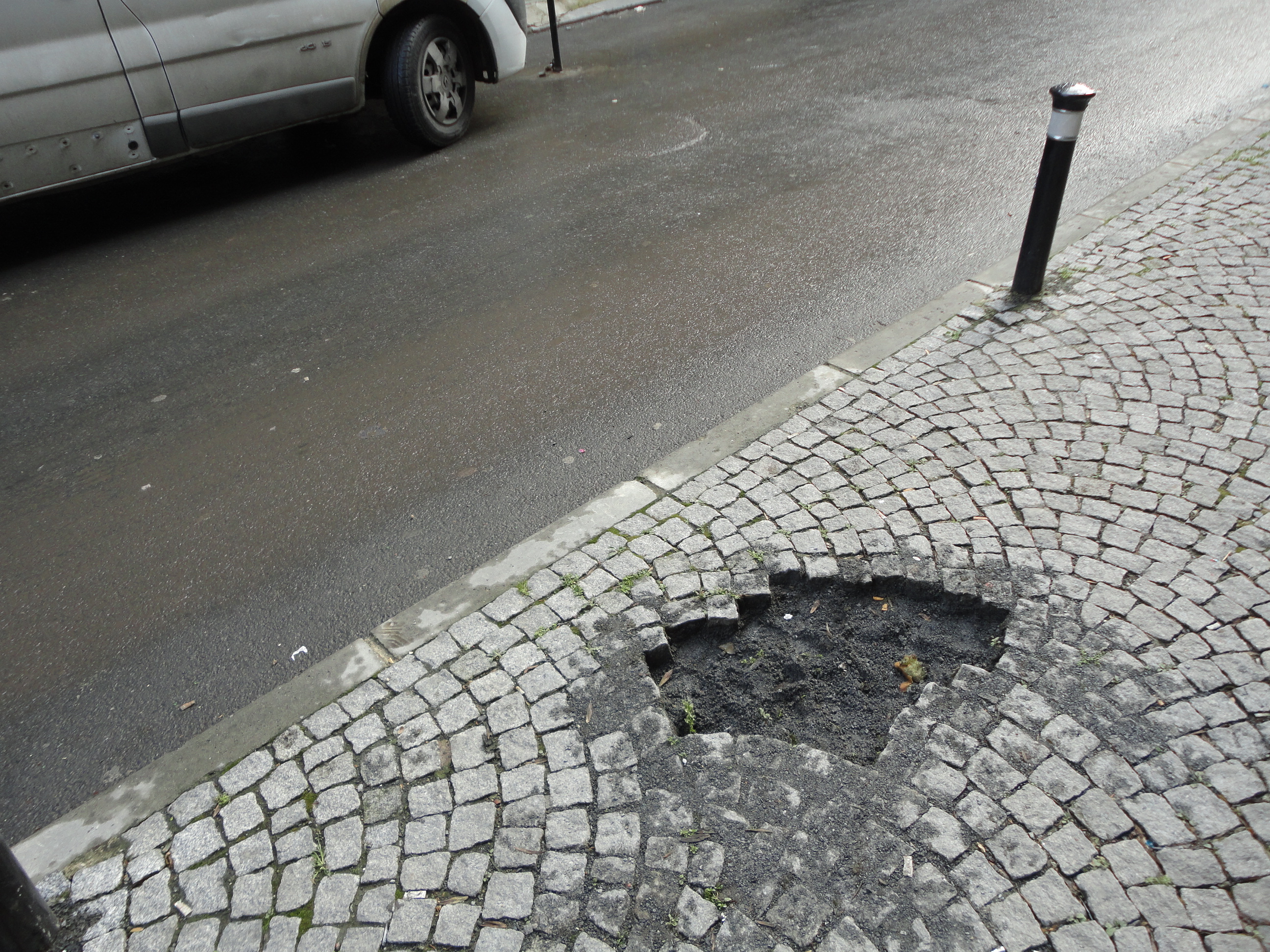 Some recently laid paving stones had been torn up, presumably for use against the police.
