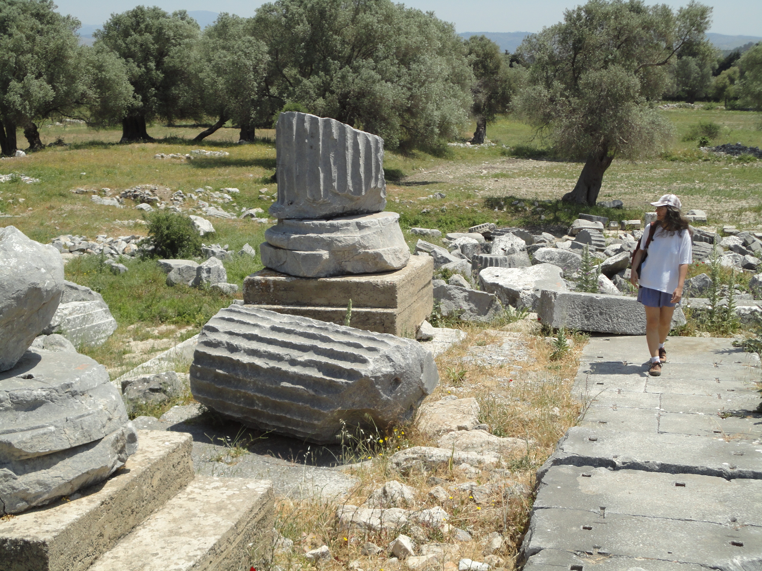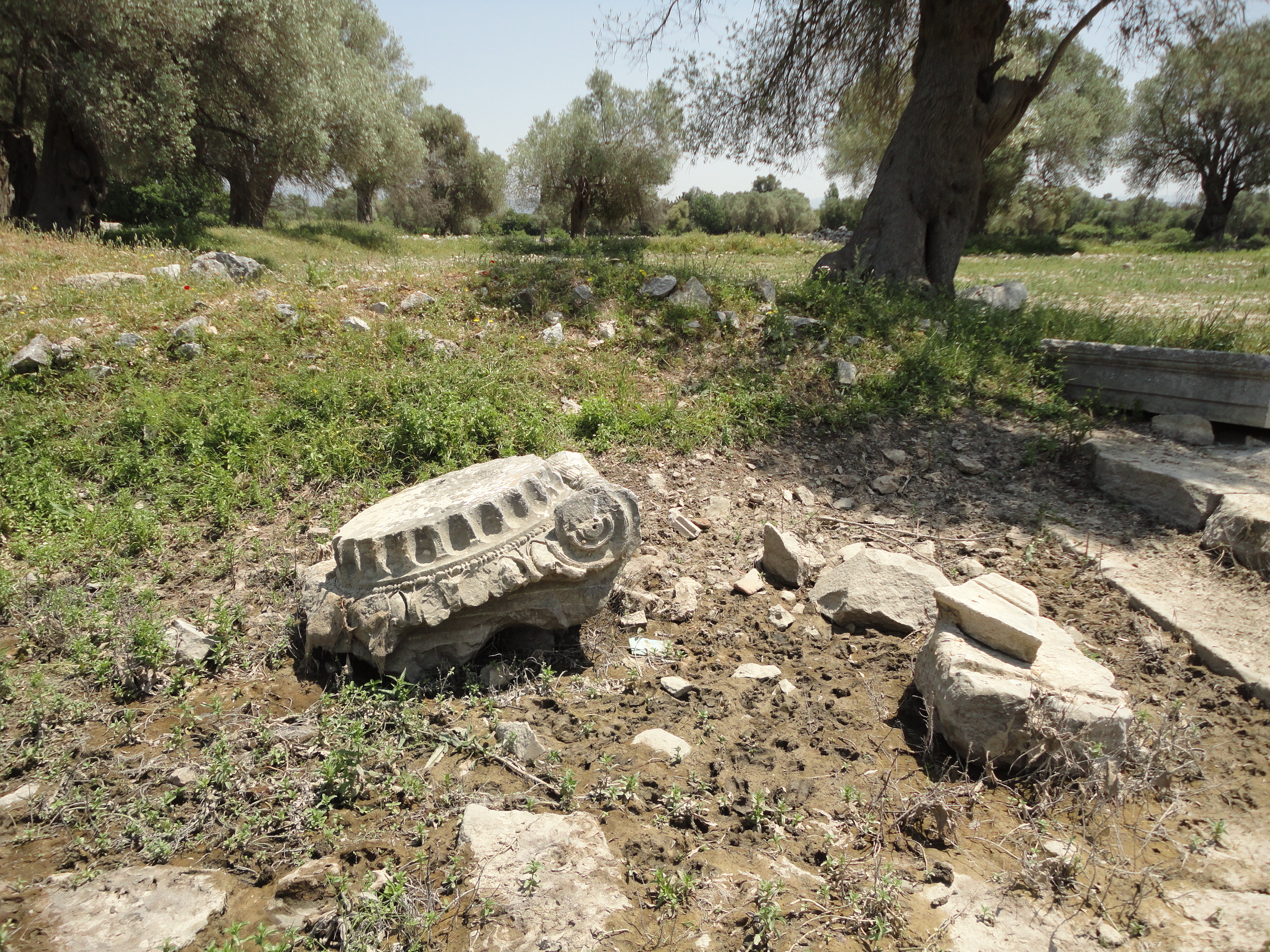 The orgasmic climax of an archeologist’s life must be to re-erect a tumbled-down column. This climax had been partially achieved with an Ionic column at the old temple of Dionysus in Teos. According to a sign on site, as well as Bean’s book, the ruins of the temple had been uncovered in the eighteenth century by the Society of Dilettanti. The sign did not tell us what Bean did: that “an enterprising Smyrniote” then proceeded to use the ruins as a marble quarry.