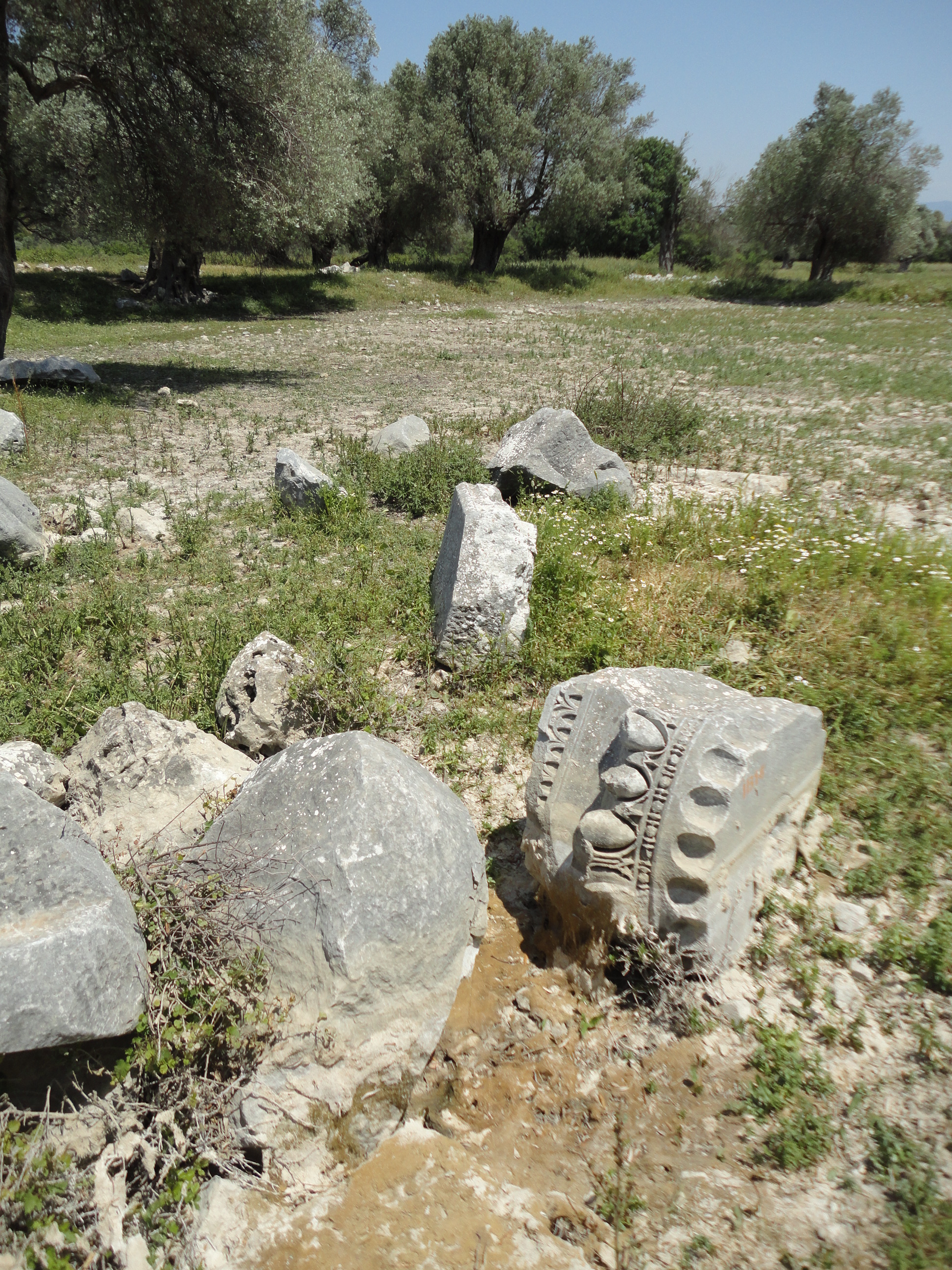 Regarding its past as well as its future, the world is in such a state that I am content with the remaining stones in Teos. If all you know of archeology is photographs of the Pyramids or the Parthenon, you can hardly be impressed by a low pile of scattered stones. But on a sunny day in May, a day that was warm but not hot, in the middle of fields still green from the rains of winter, the scattered stones were all I needed to see.