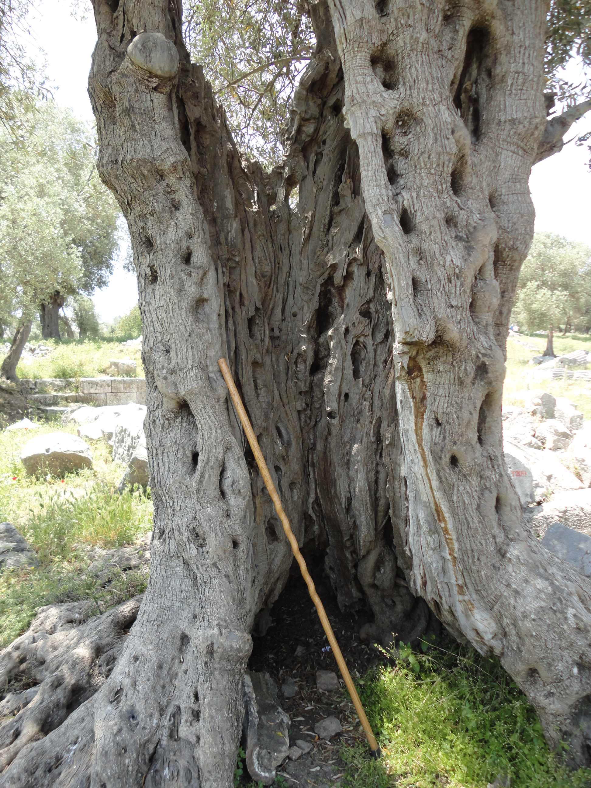 I do not recall seeing olive trees elsewhere that were as large as those of Teos. These have been trimmed and thus, presumably, kept productive; but the trunks have continued to expand over the decades or centuries, and then the dead wood inside has withered away, sometimes making the old tree into a ring of new trees.