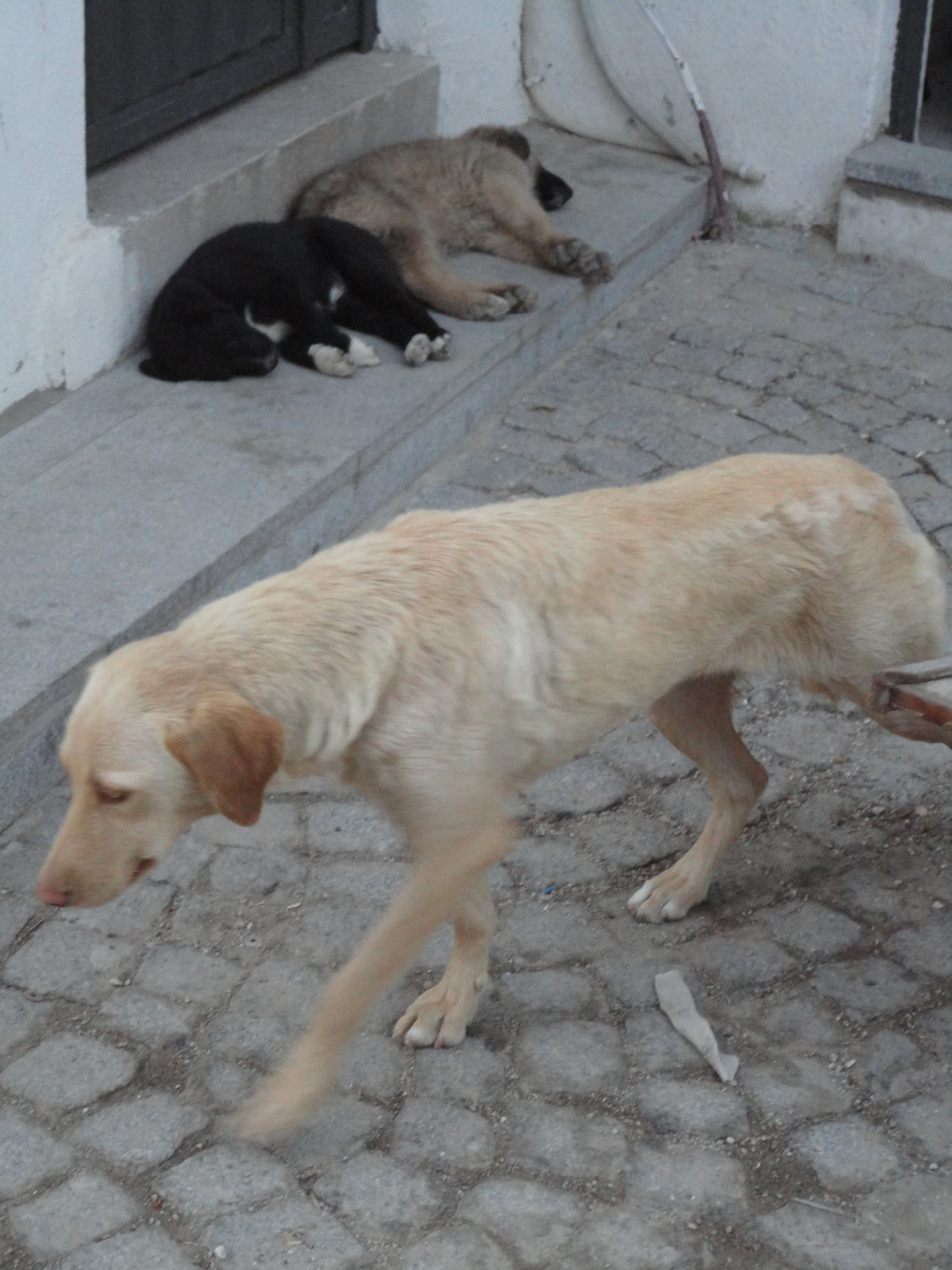 On our way back to the pension, we met three people walking in the other direction. A fellow with a white beard asked in a Scottish brogue if his group were on the way to Teos. We said a sign pointed the way, though we had not gone there. He said he thought there should be a shortcut somewhere.