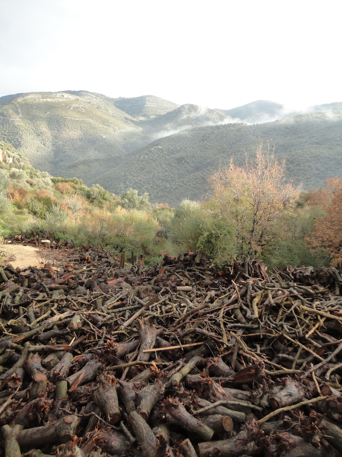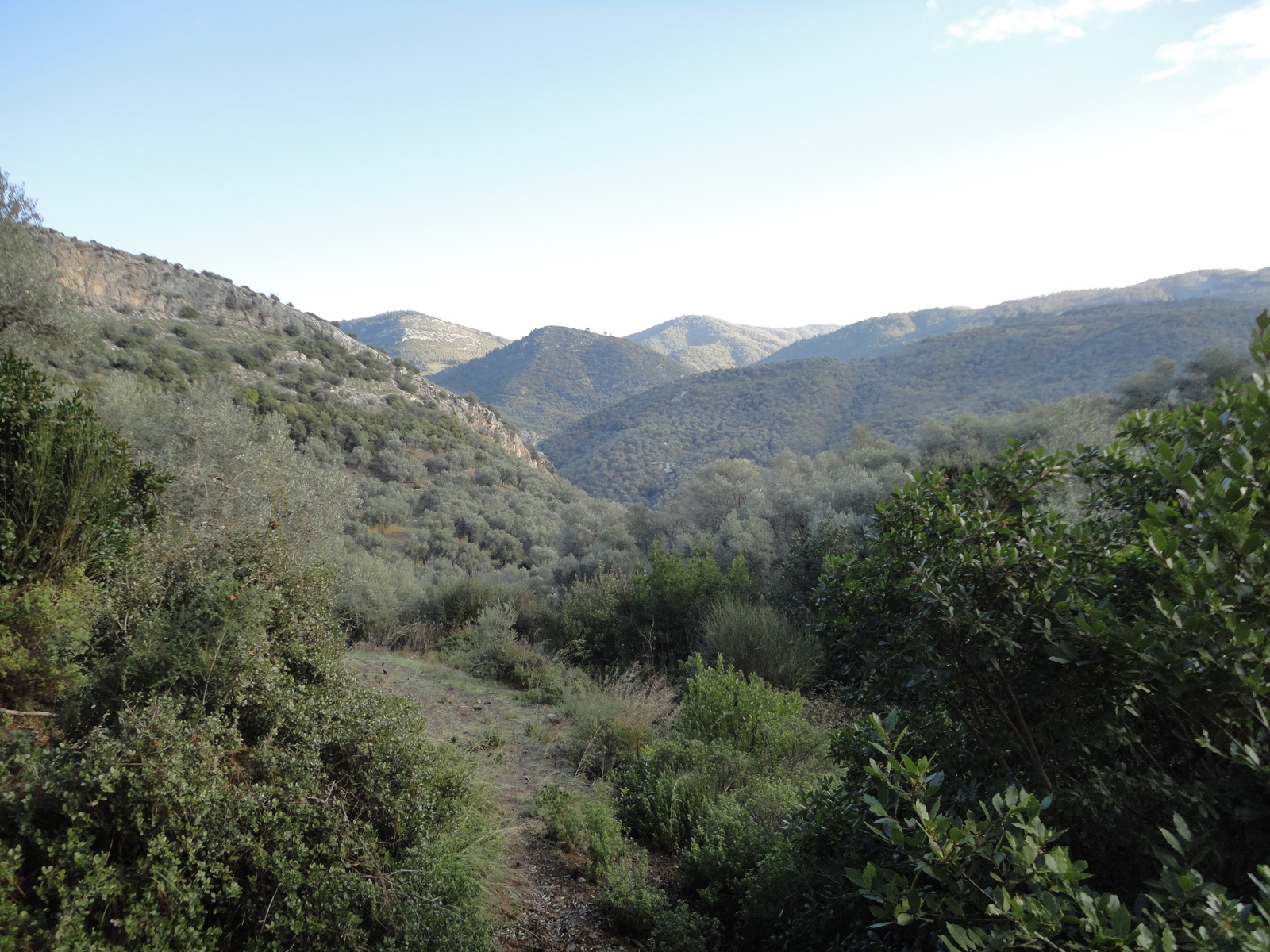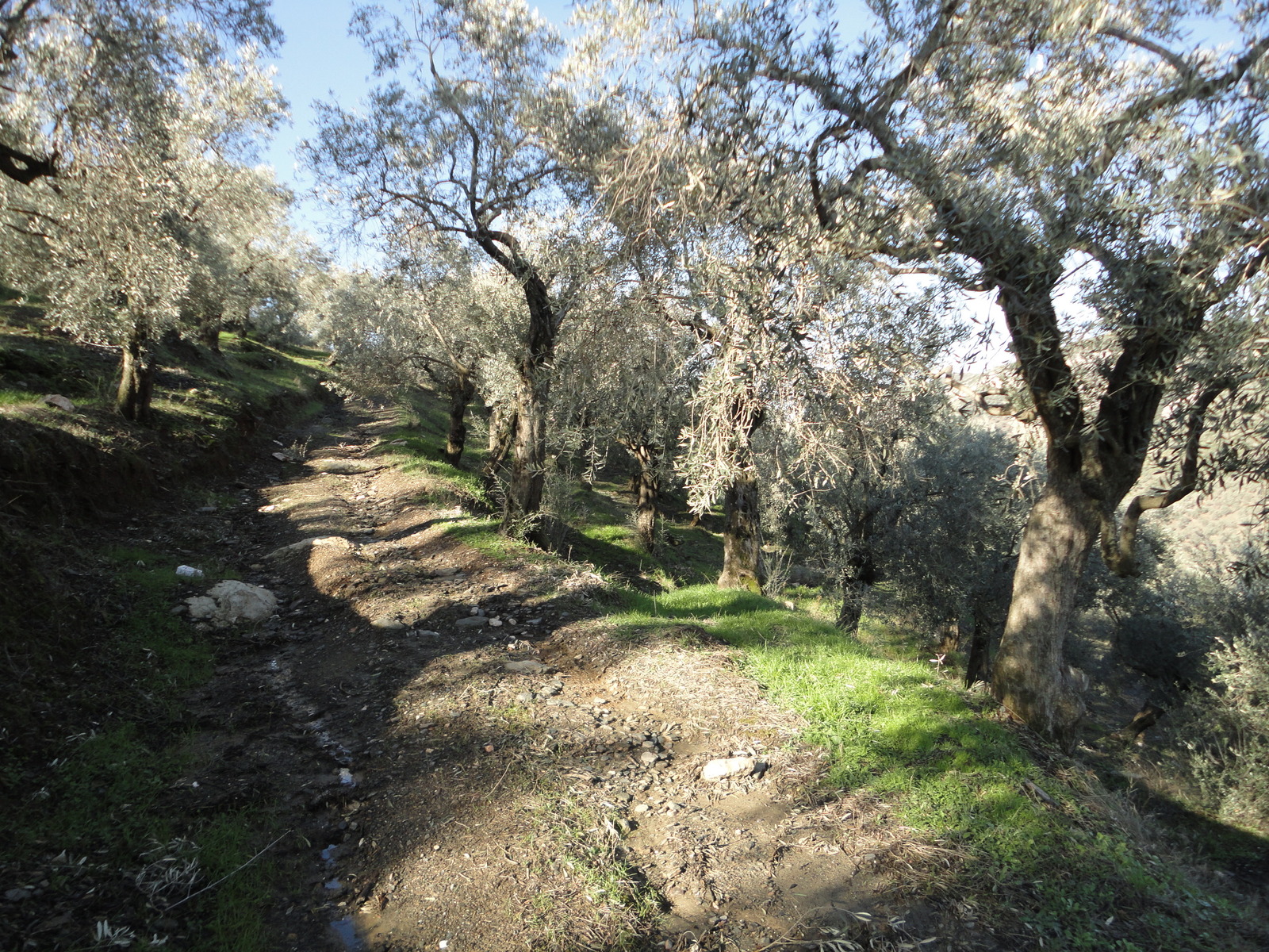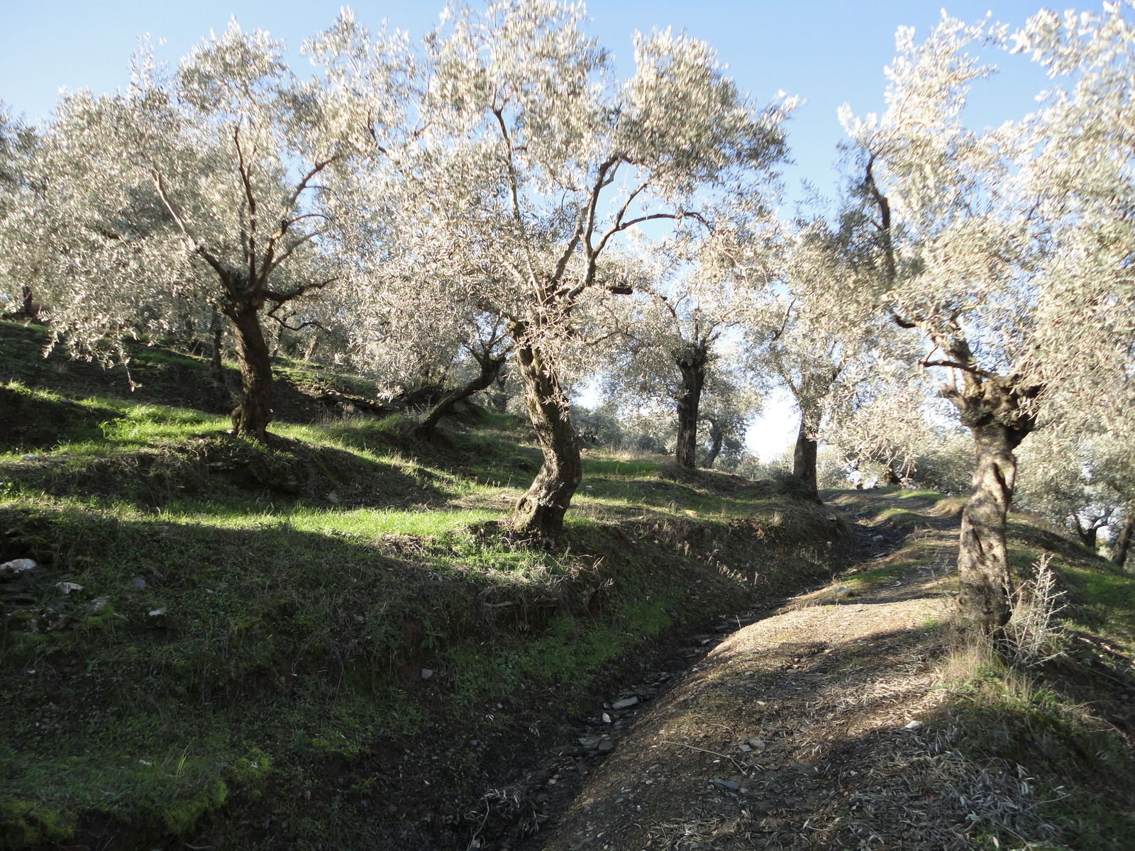 There was more activity among the olive trees then I had seen before. I had seen no activity in summer; but now I saw tractor tracks, left from the olive harvest and the olive trimming. During my hike on Friday, I would meet a woman and man collecting olives. Their dog barked at me, but kept his distance on the hillside.