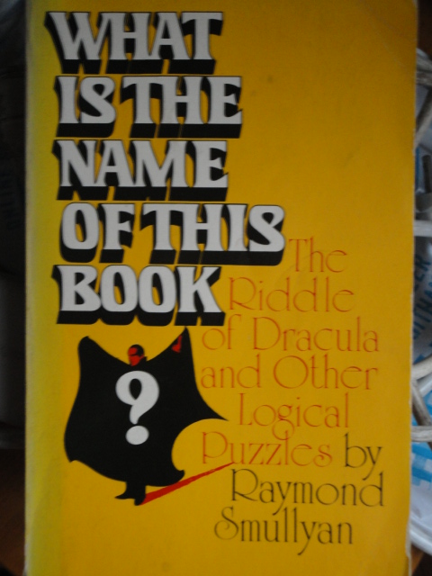 Another kind of reason is told of by the logician Raymond Smullyan. I mourn Smullyan’s recent death: he has given me pleasure through several books, notably What Is the Name of This Book? I must have read about this in Martin Gardner’s “Mathematical Games” column in Scientific American for March, 1978 (when I turned 13): “Count Dracula, Alice, Portia, Others Consider Logic Twists.” (This was later reprinted as Chapter 20, “Raymond Smullyan’s Logic Puzzles,” in Penrose Tiles to Trapdoor Ciphers, 1989.) I may have found Smullyan’s book in the Alexandria Public Library; eventually I obtained my own copy from a junk shop in West Virginia. That copy is inscribed in blue ballpoint with the single name Weinstein. In the chapter called “Logic and Life,” in the section called “Some Characterizations of Logic,” several stories are told, and then: