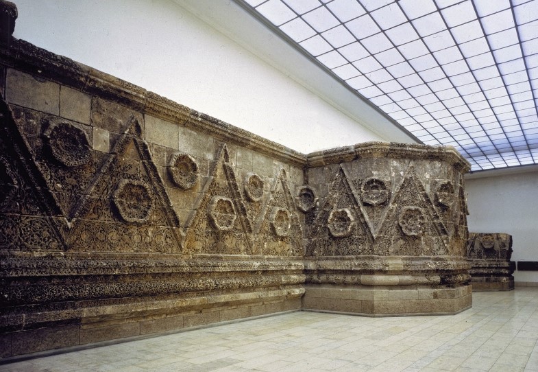 [Mshatta Palace façade, Jordan, commissioned by Umayyad caliph al-Walid II; never completed; rediscovered in the 19th century and given to Kaiser Wilhelm II by Sultan Abdul Hamid II (who suppressed the first Ottoman parliament, featured in “Bosphorus Sky”); now in the Pergamon Museum]