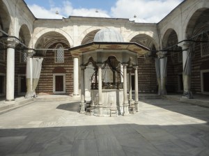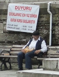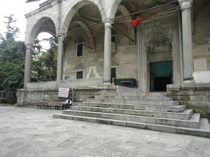 As at Cerrahpaşa, so at Hekimoğlu Ali Paşa Mosque, the garden was good place to sit. A man on my right read a newspaper while kittens played about his feet, a dish of milk nearby. Presently a man sat at my left and said Selam aleykum, and I said Aleykum selam.