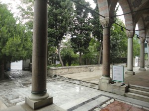 The soup kitchen (imaret) of the Haseki Hürrem Sultan Külliyesi had been been under renovation and off limits in 2013. The garden was a construction zone then. Now it was green and landscaped, but I still couldn’t get in. The sign outside called it the Haseki Abdurrahman Gürses Eğitim Merkezi. Haseki was the title of the chief consort of the Sultan, and Hürrem, a.k.a. Roxelana, was apparently the first to hold this title. I don’t know who Abdurrahman Gürses was or is. Eğitim Merkezi is “teaching center”; but whether the teaching is of anything ennobling or at least useful, I do not know.