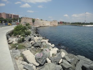 Bits of the old sea walls are still standing.