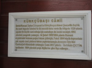 Descending the hill towards the Sea of Marmara, I discovered the Kürkçübaşı Mosque. It seemed to be wooden, and it did not have a dome. According to the plaque, it had been erected in 1520 by Ahmet Şemsettin, the fur-coat-minder or Kürkçübaşı of Süleyman the Magnificent.