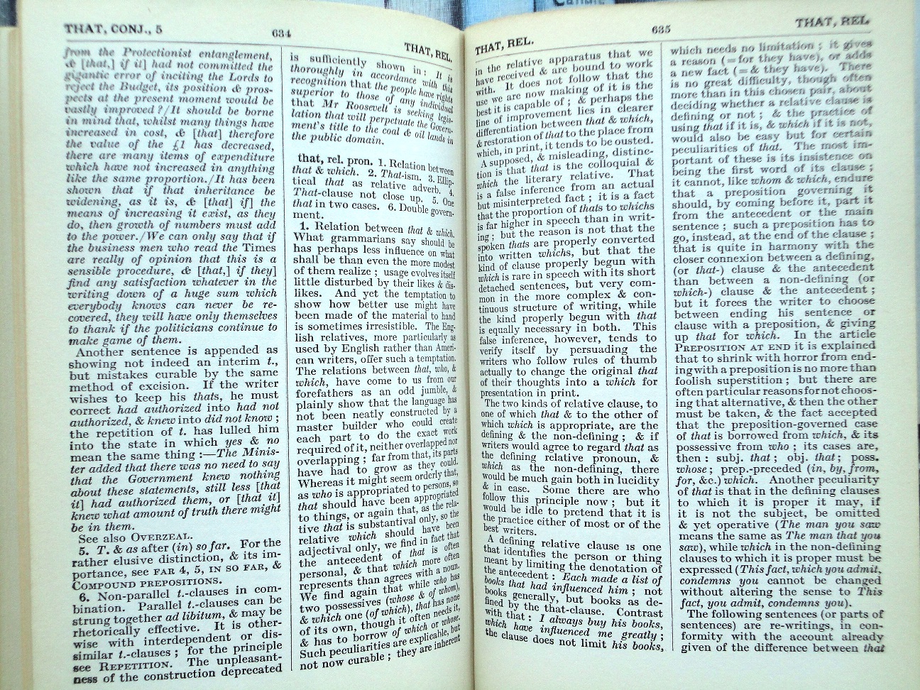 We are constantly faced with the problem of whether to use “that” or “which” or “who.” If we do not know what to do, then we may benefit from a rule. This is where Fowler comes in. He proposes to use “that” for defining clauses, “which” or “who” for non-defining.