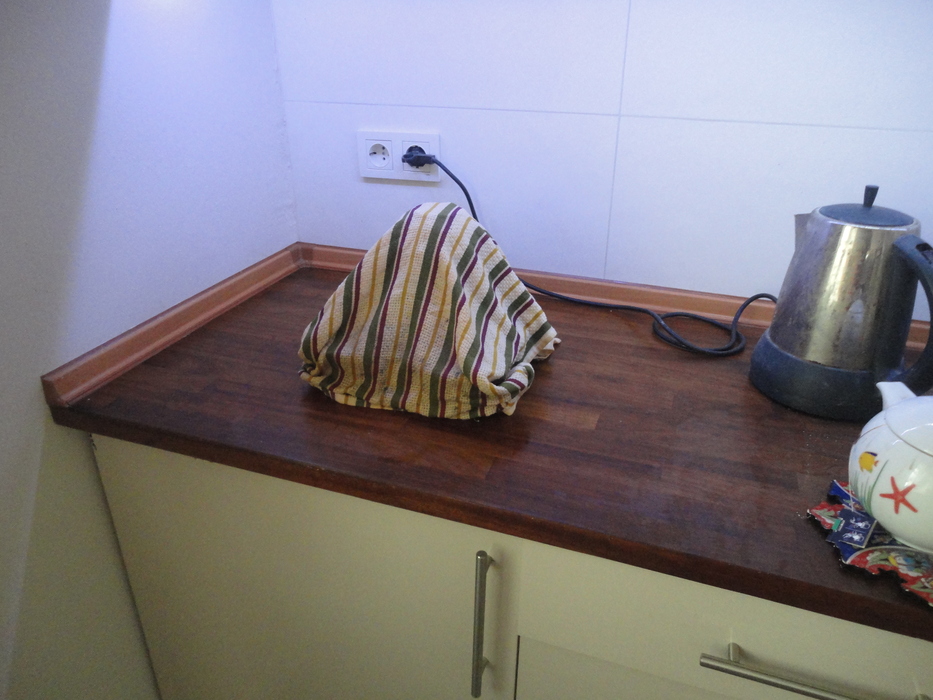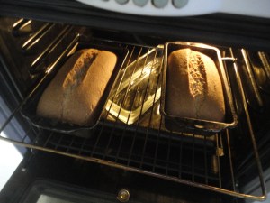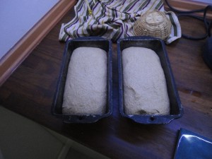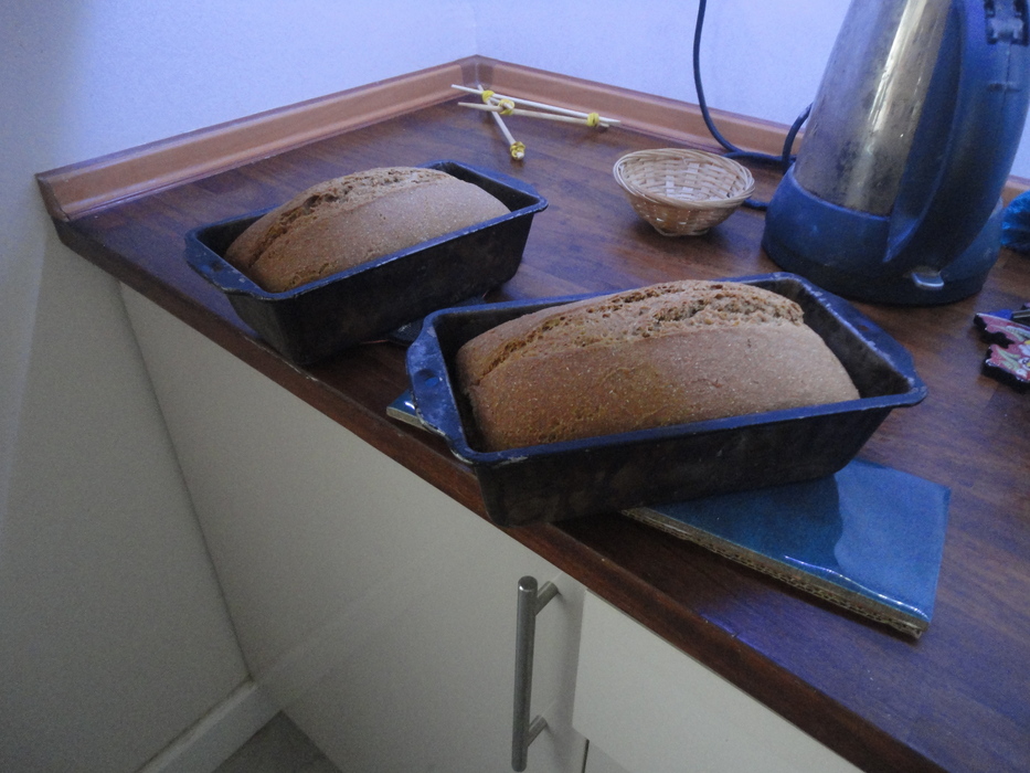 Now the loaves are rising, slowly. This time of year, when our flat is about 18 degrees Celsius, I give the loaves four or five hours of rising