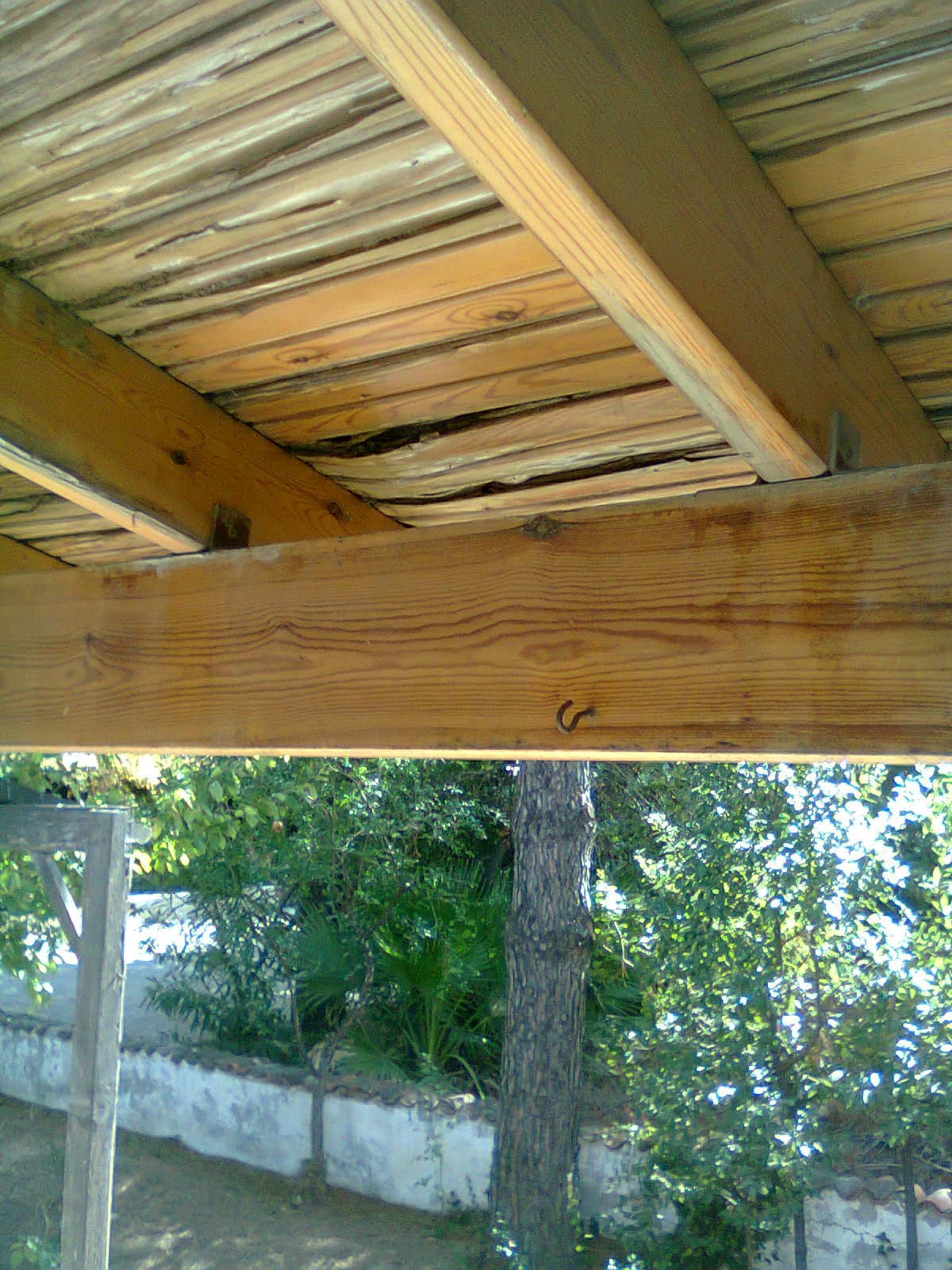 If the roof had been kept clear of pine needles and other debris, then water from winter rains might not have sat on the tiles long enough to soak through, and the wood supporting the tiles might have remained sound. Indeed, the part of the roof that is sound now has no pine needles on it. I pointed this out to the contractor, when we were looking down on the roof from the terrace above.
