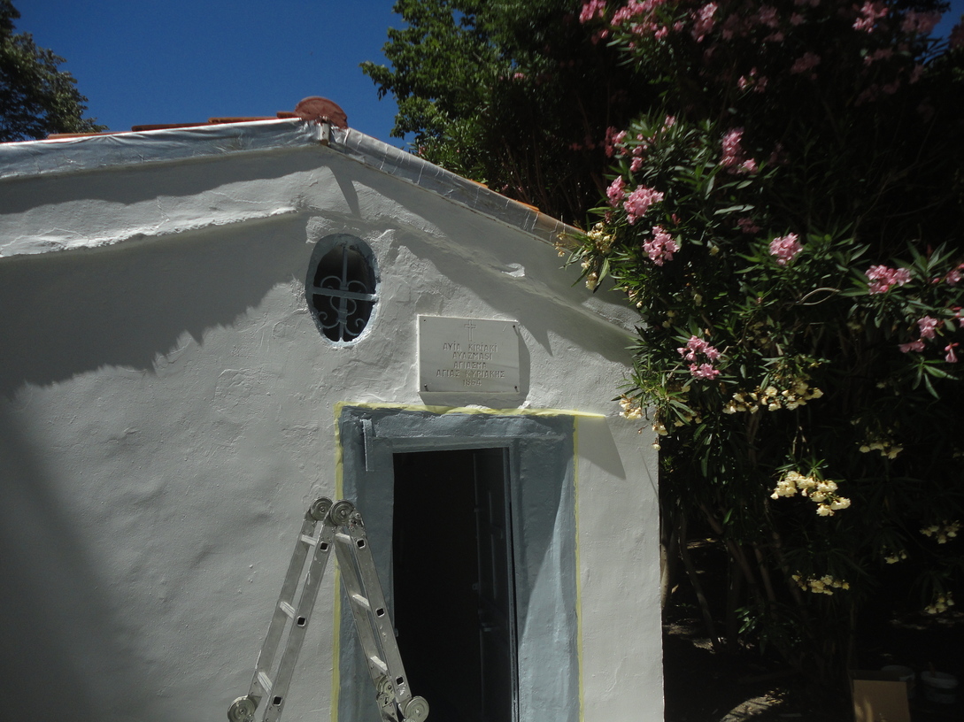 In Tarabya, Sarıyer, where I live, this building houses a holy spring dedicated to another martyr, St Kyriaki (or Aya Kiriaki in Turkish), whose historicity would seem to be as doubtful as that of St Catherine of Alexandria. I included a winter photo of the site in “Visibility,” for no particular reason but having passed it recently. Afterwards I sent a slight correction of its location to a “cultural inventory” website. When I passed the holy site on Friday, July 4, 2025, the gate in the fence was open, and two men were working in the garden. The elder told me there would be a service (ayin) the next day. I saw that the inner walls of the building over the spring were as white as the outer, with no embellishment. Even from outside the fence, the summer sun let me see that the plaque over the door read as follows: