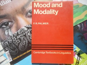 In my copy of the text at this point (page 33), I see that I have pencilled in “shouldn’t oughta done”: this is from a song that I must have known well when I quoted it at the farm, but that now I can barely hear in my memory. I cannot identify the singer. A web search comes up with other songs that feature the same co-occurrence of modal verbs. Palmer would just say those songs are in dialect. Well then, in the dialect of Norman and Donna at the farm, the modal co-occurrence “mighta shoulda” was allowed.
